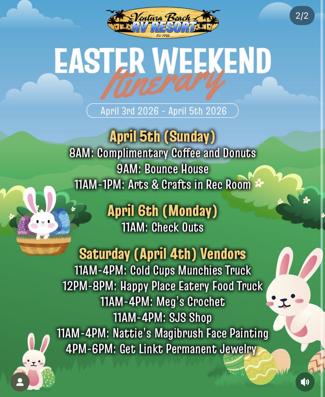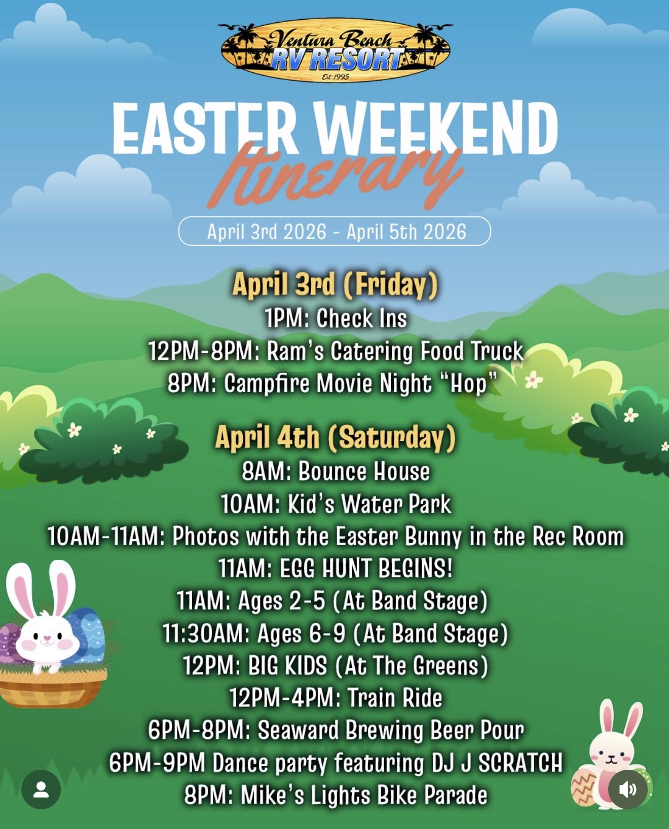 - Easter Weekend Events (4/3-4/5)- Ventura Beach RV Resort